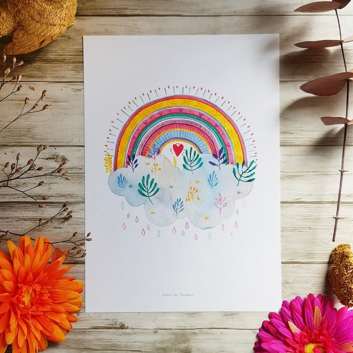 Un souffle de douceur et de couleur s’invite chez vous avec cet arc-en-ciel tendre et poétique, illustré par Julie de Terssac.