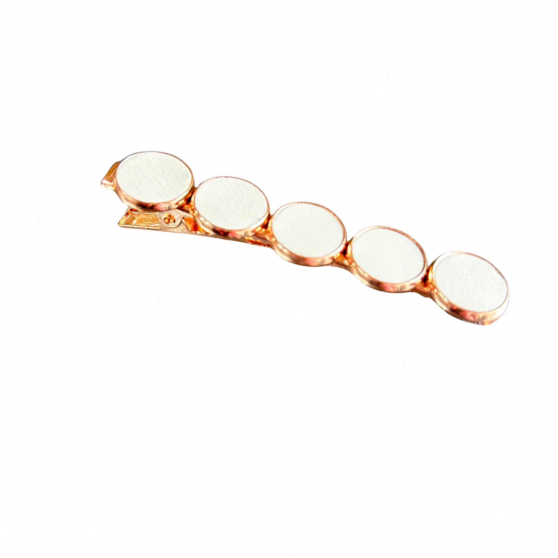 Cette barrette du 31 mai présente une pince en cuir et métal doré de 7 cm qui assure une tenue ferme pour vos cheveux.