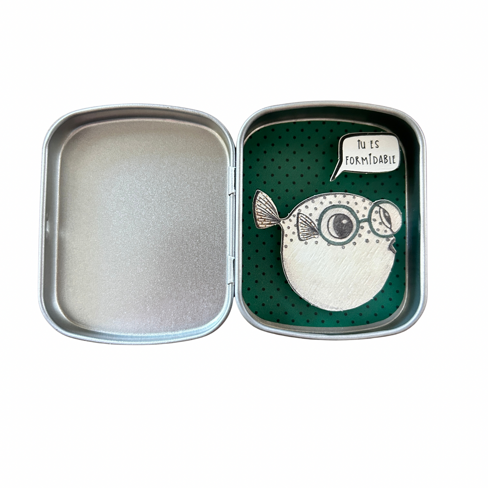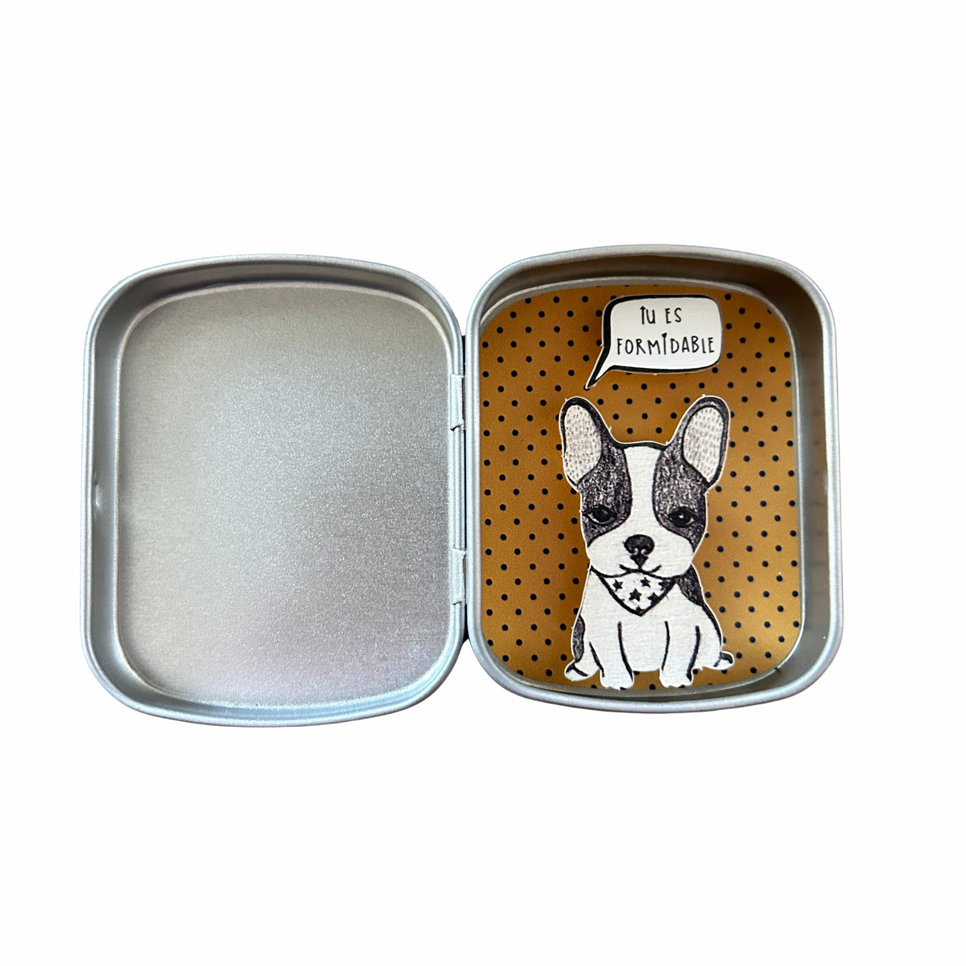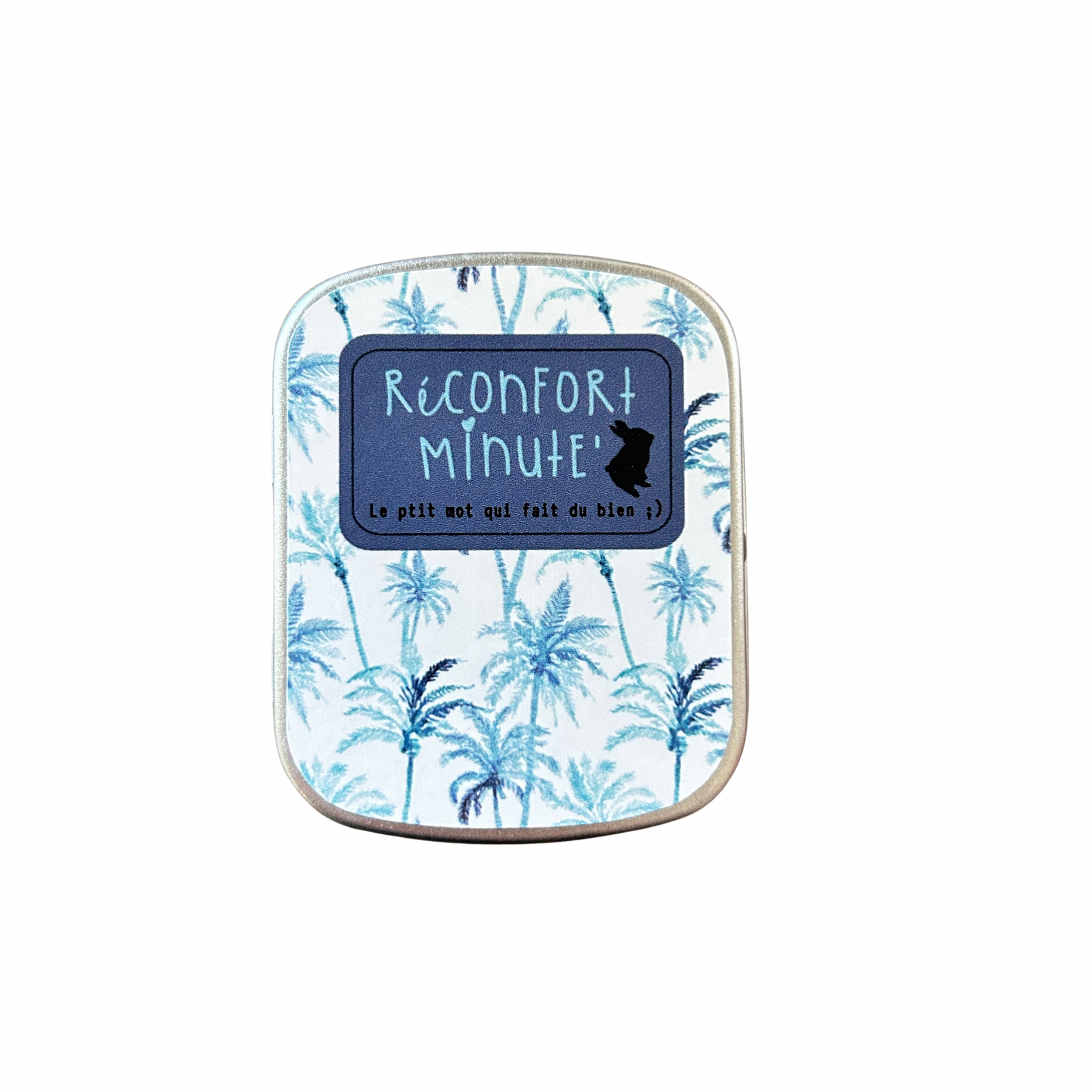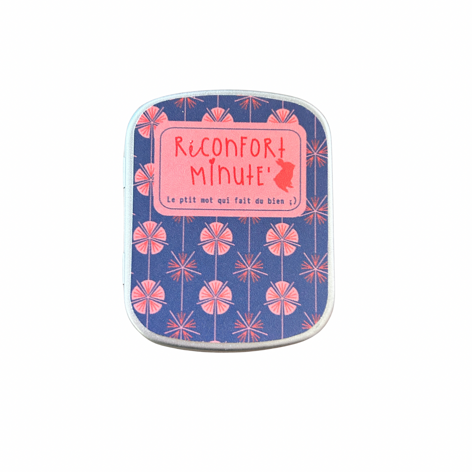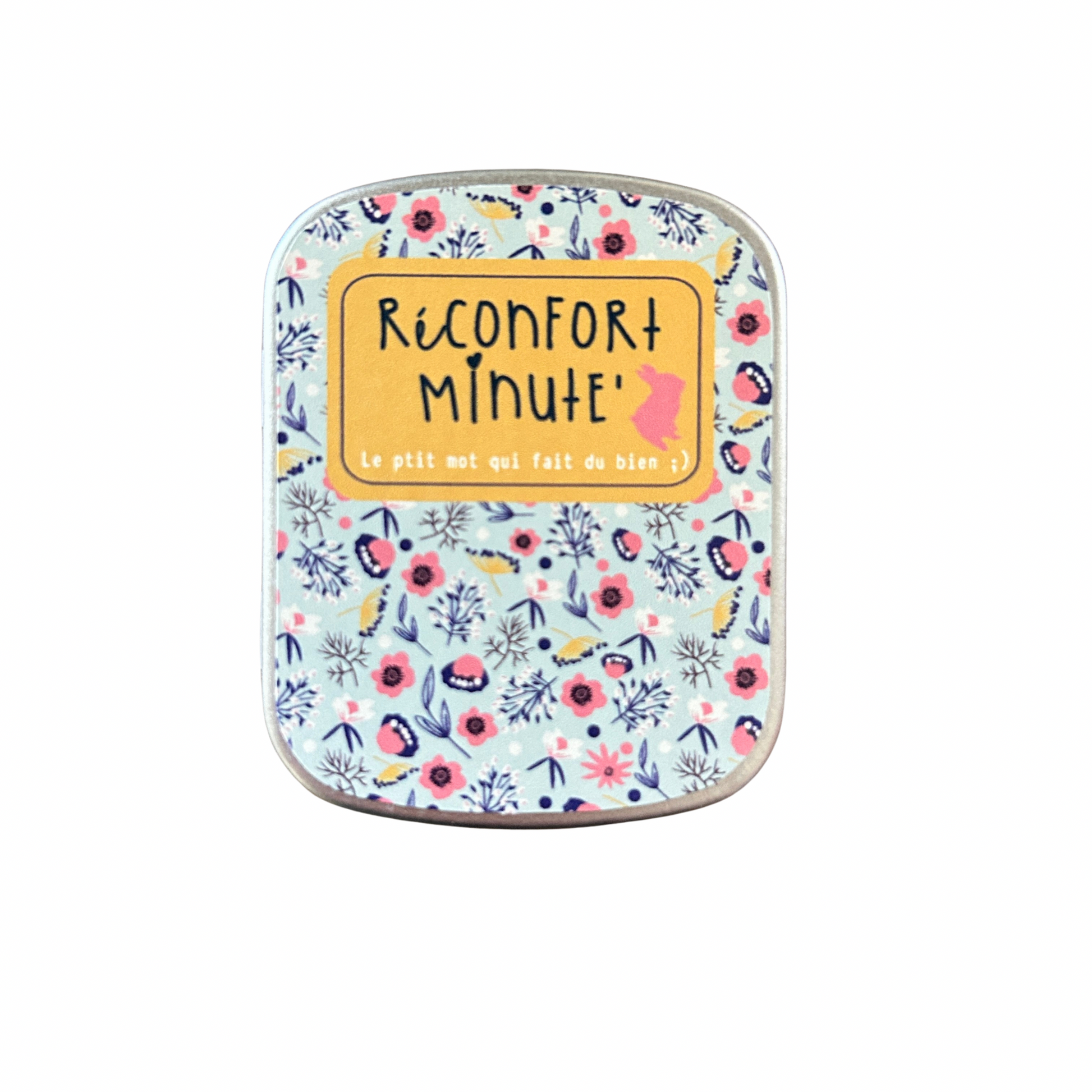 La boîte de réconfort minute est une jolie boîte en fer blanc, contenant un petit personnage illustré accompagné d’un message tendre et bienveillant.