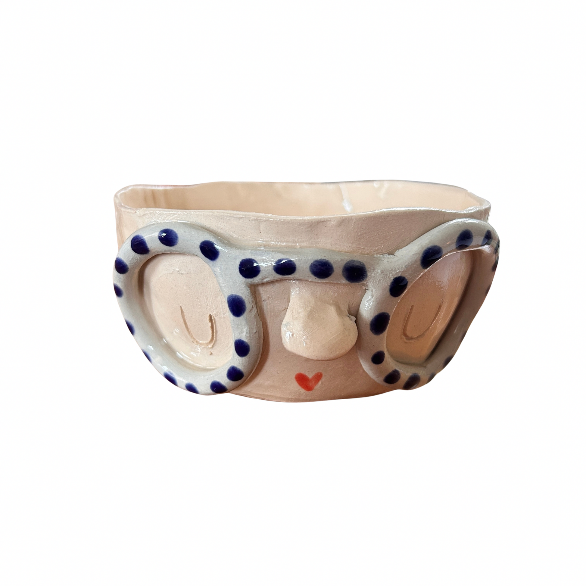 Ajoutez une touche d’humour et d’originalité à votre vaisselle avec ce bol visage à lunettes, décoré de petits pois. Chaque pièce est façonnée et émaillée à la main, ce qui la rend totalement unique.
