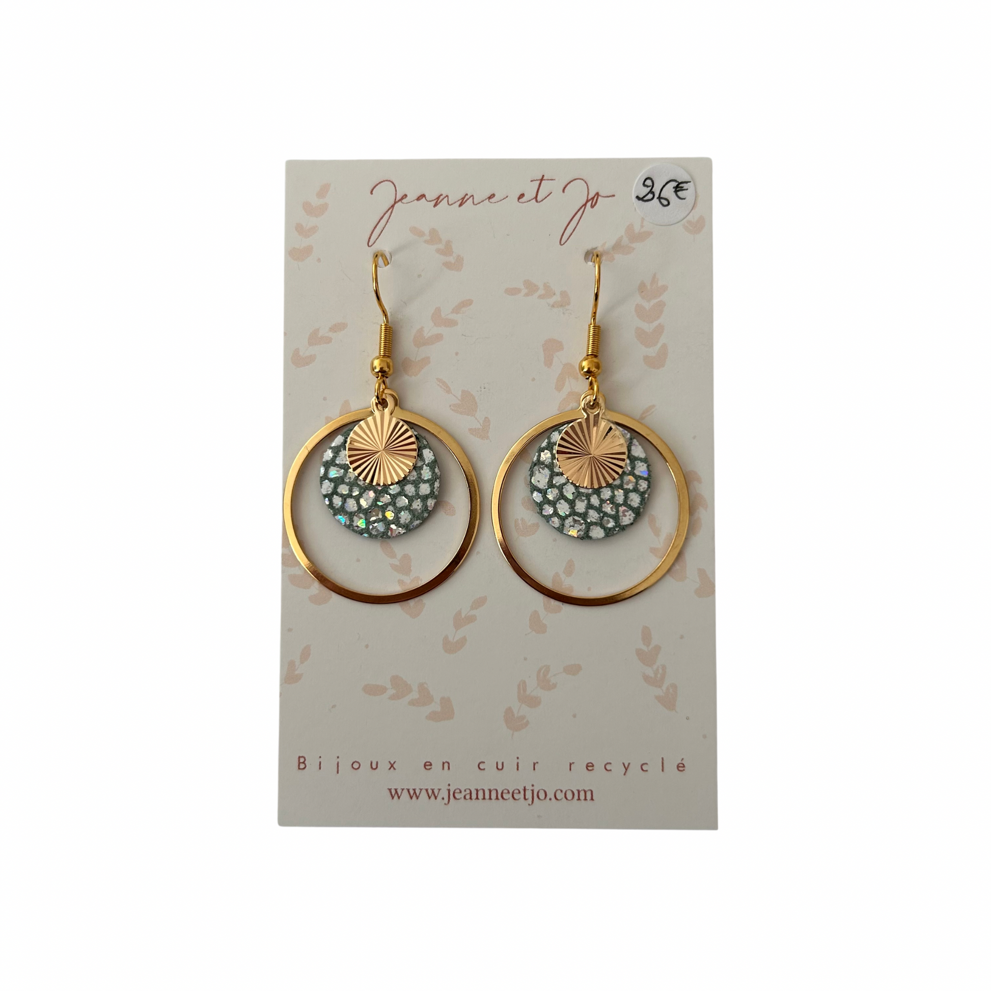 Anneau et attache en acier inoxydable, rond découpé dans un cuir recyclé.