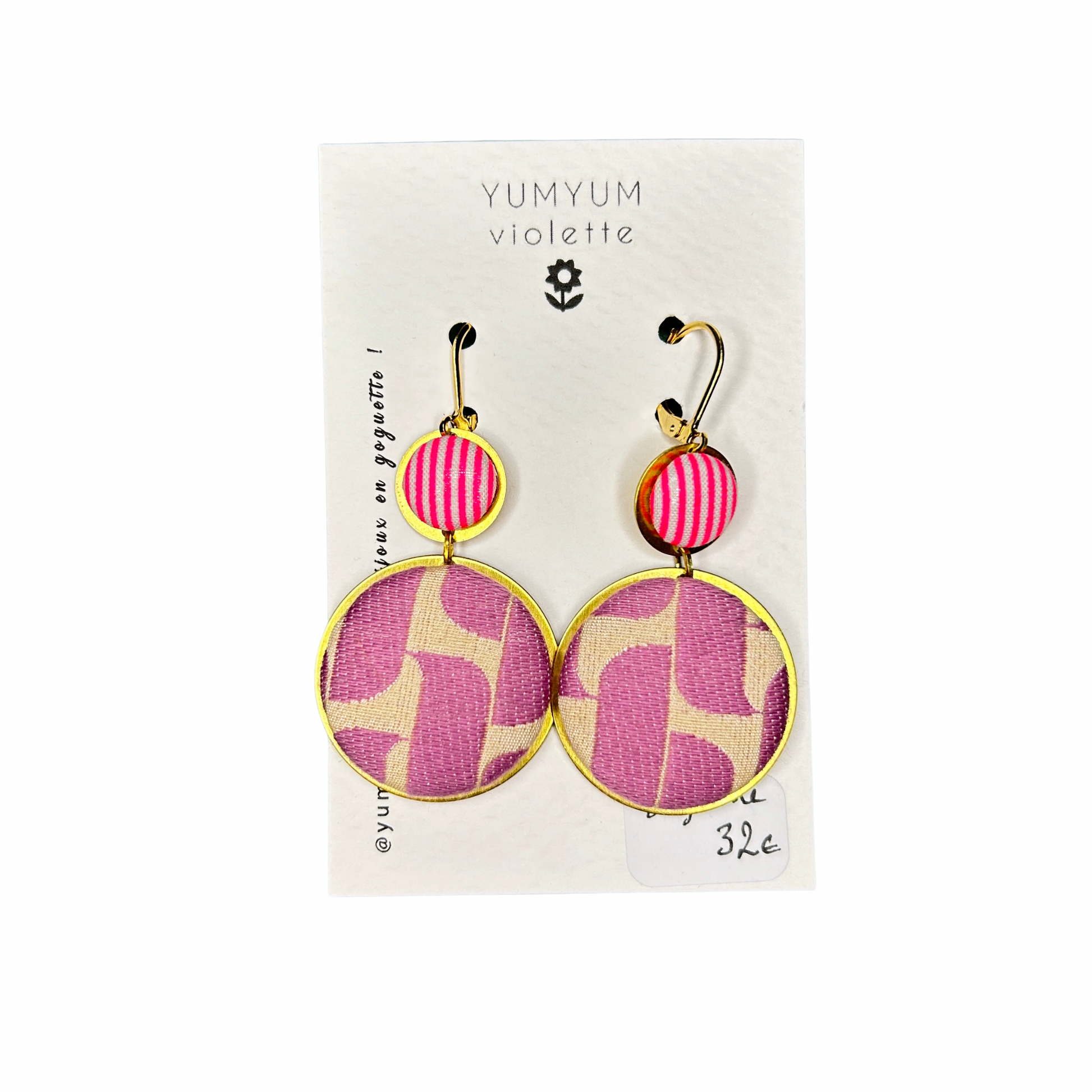 Ces boucles d’oreilles , textile coloré, pour un contraste vibrant et moderne.