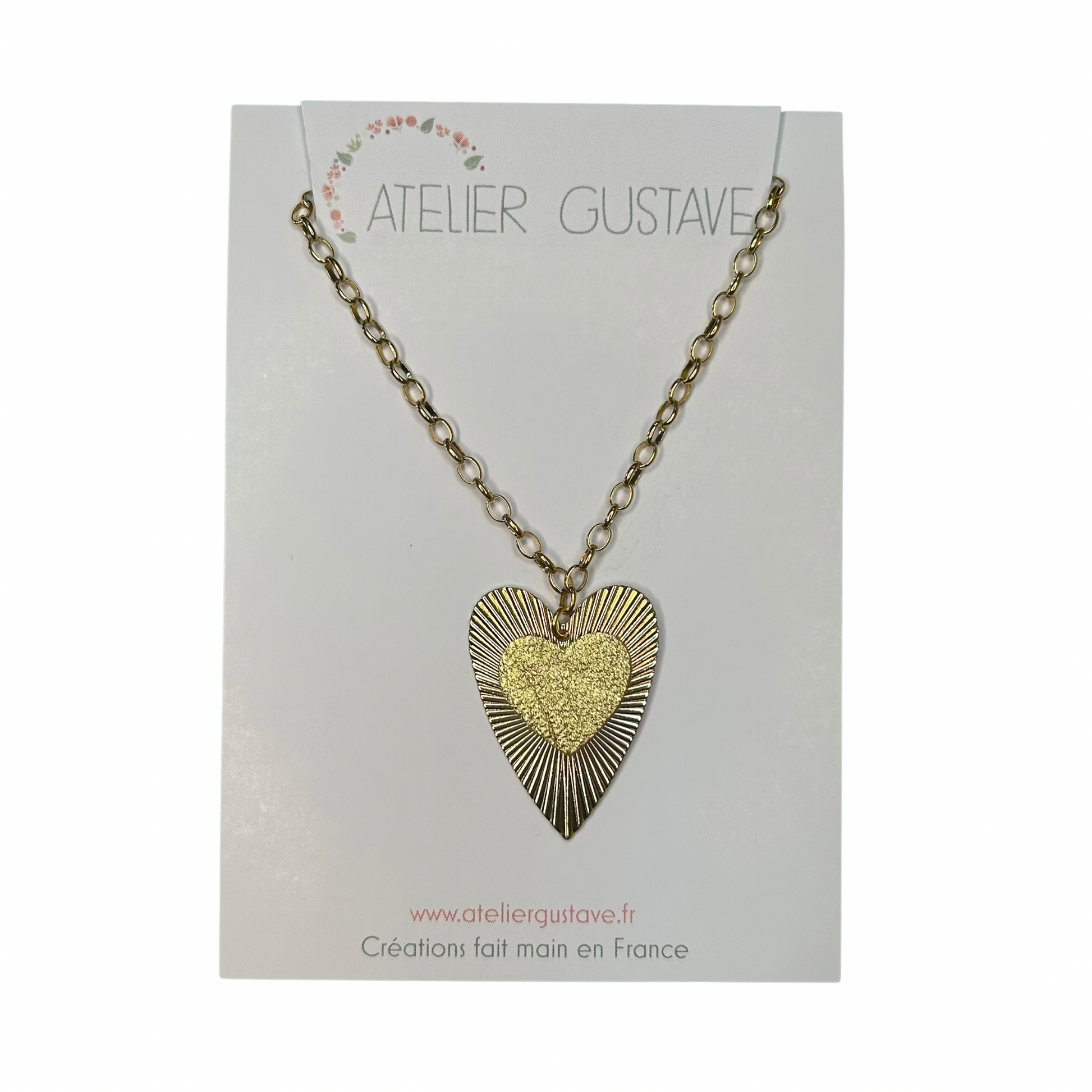 . Chaine et coeur en acier inoxydable doré à l'or fin