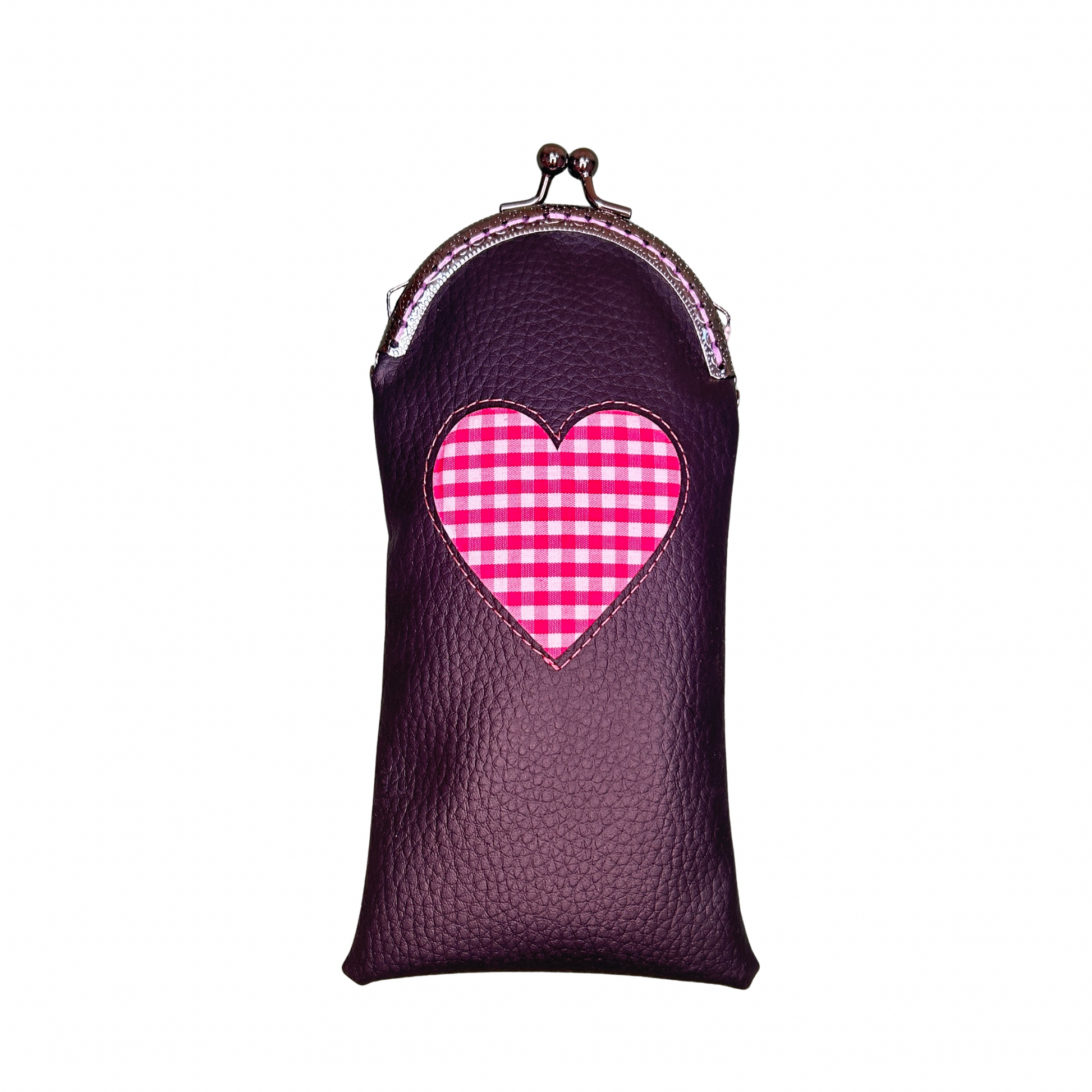 Entièrement réalisé en similicuir, il combine une face noire décorée d’un adorable cœur rose vichy, et un dos rose fuchsia éclatant.