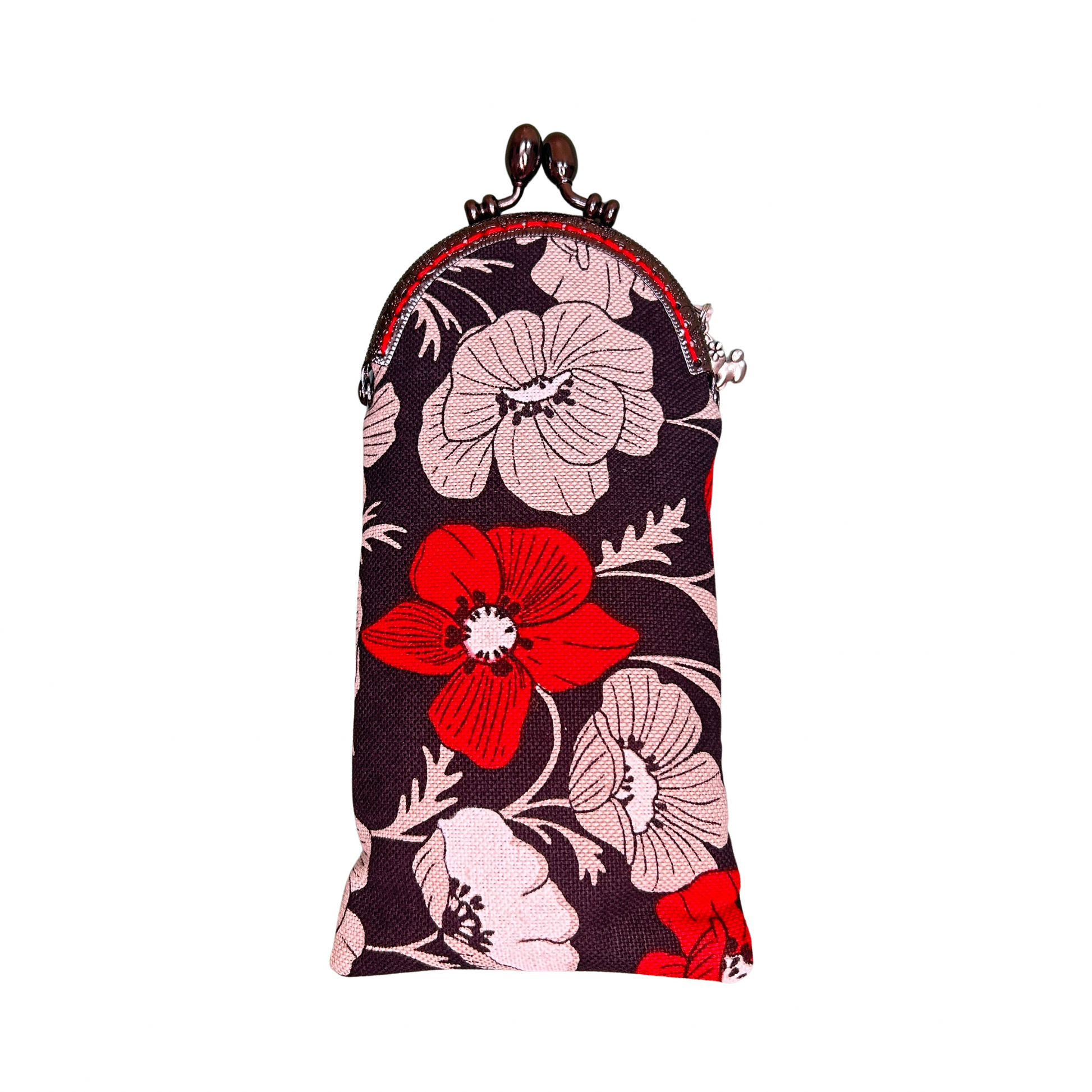 Ce modèle associe un tissu floral délicat à du similicuir noir, pour un rendu à la fois moderne et intemporel. Avec son fermoir rétro type minaudière, il protège vos lunettes avec style tout en offrant une belle finition créateur.