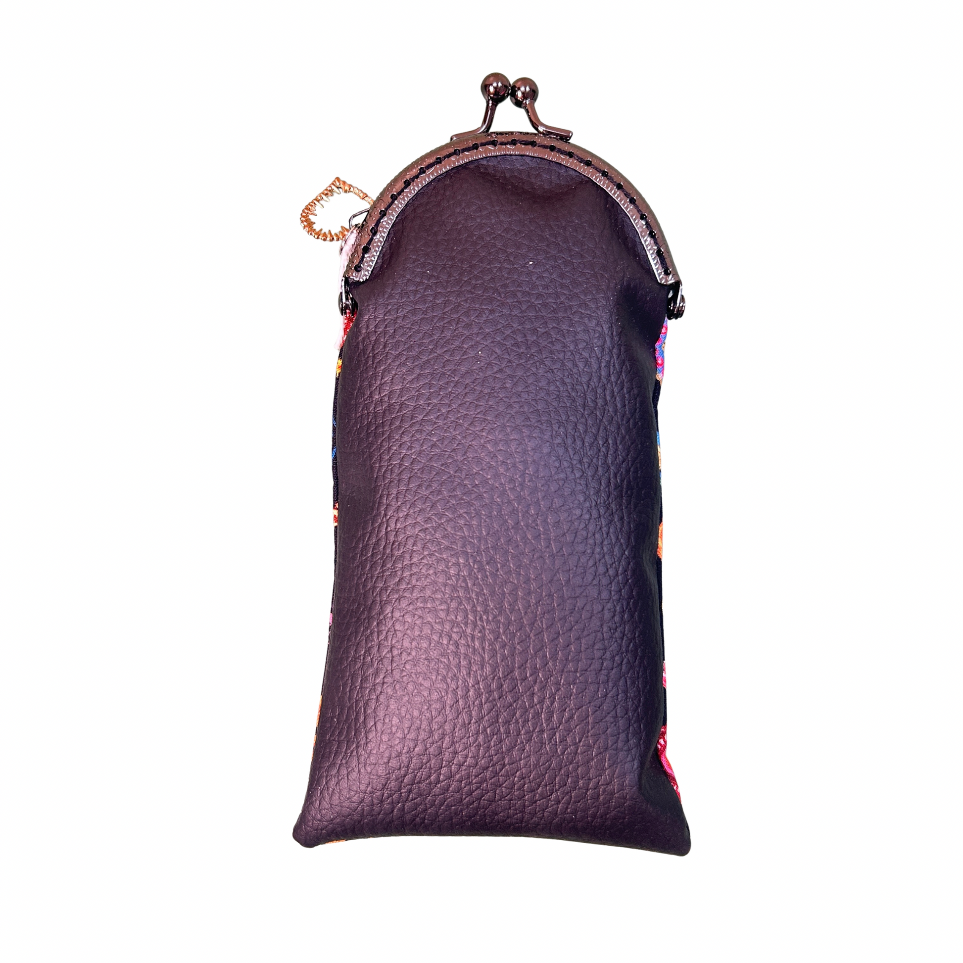 Ce modèle associe un tissu coloré à du similicuir noir, pour un rendu à la fois moderne et intemporel. Avec son fermoir rétro type minaudière, il protège vos lunettes avec style tout en offrant une belle finition créateur.