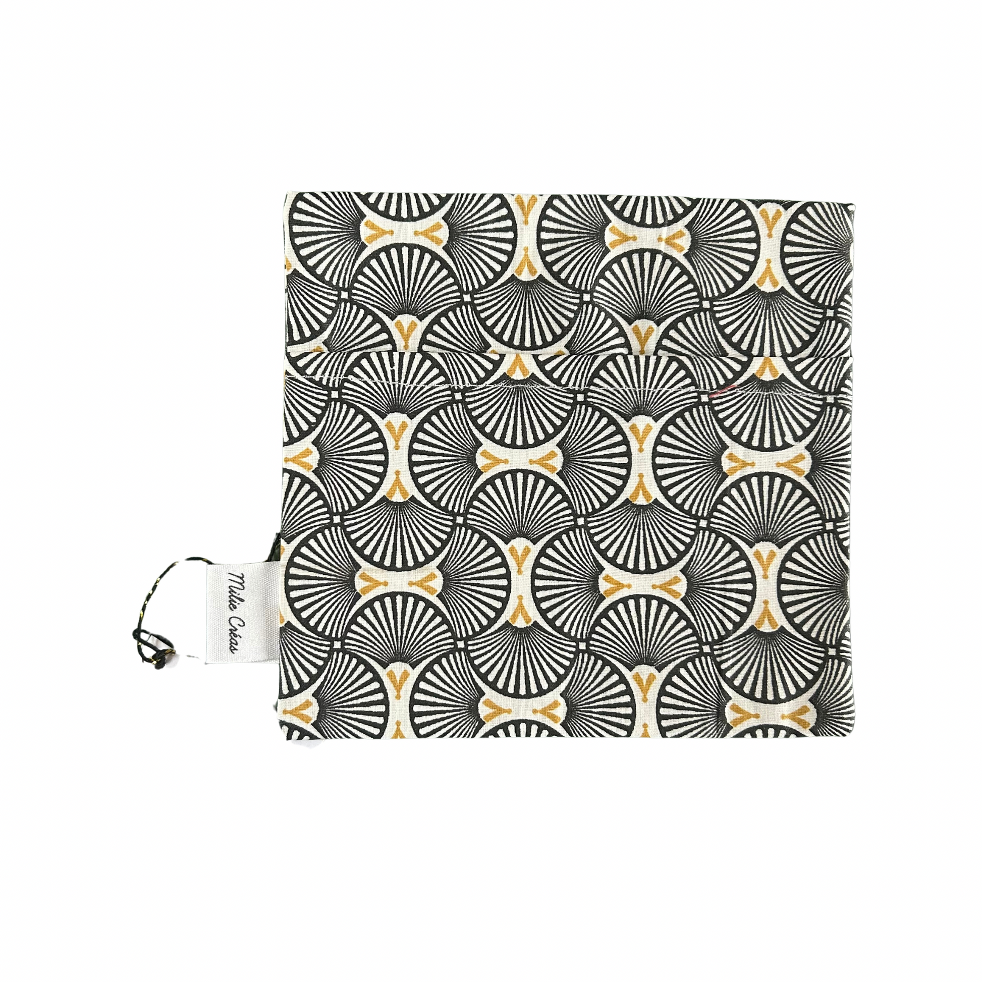 Cet étui en coton enduit imperméable de Milie Créas est certifié oeko tex et lavable à la main pour une hygiène impeccable.