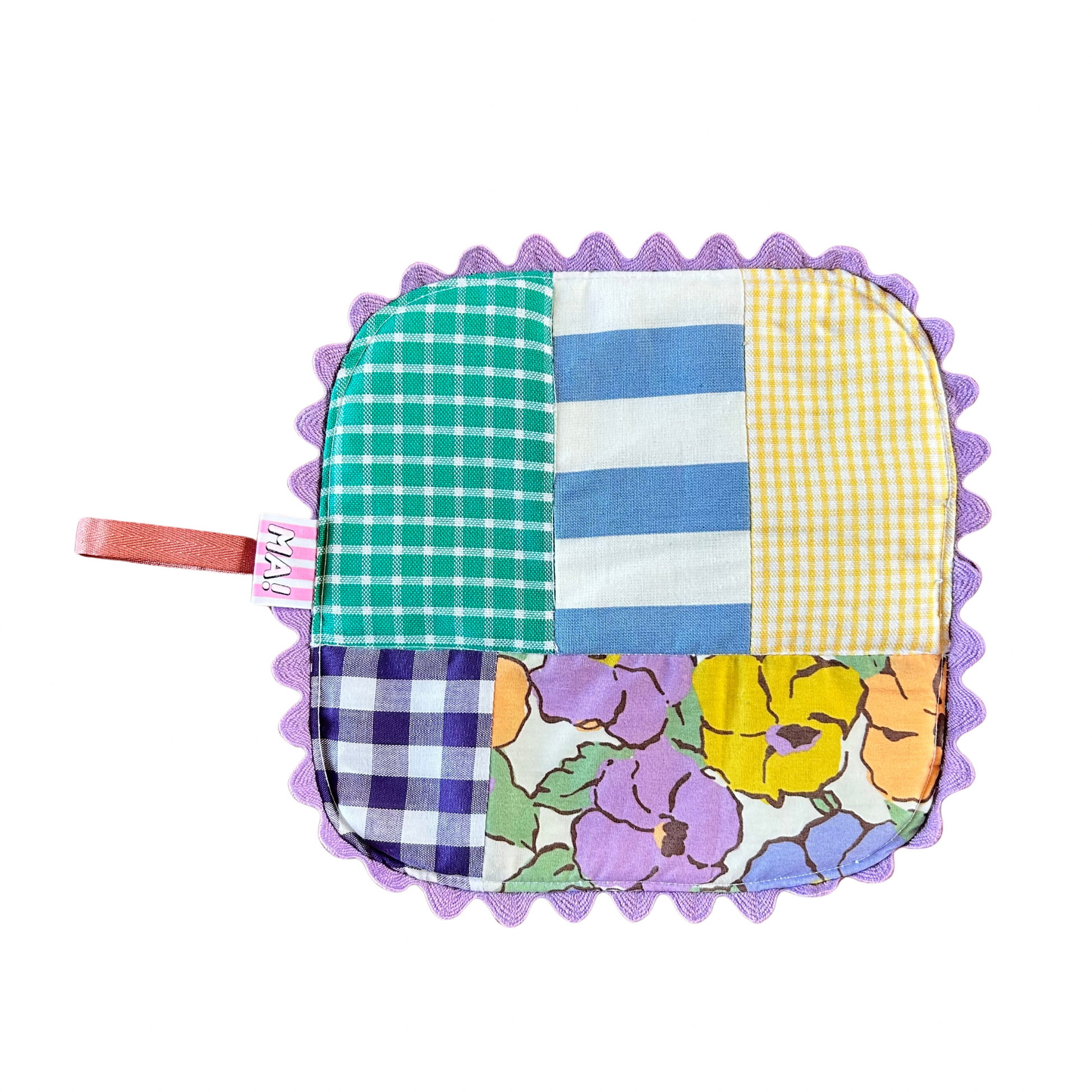 Confectionnée à partir de jolis petits bouts de tissu soigneusement assemblés, chaque manique est UNIQUE.