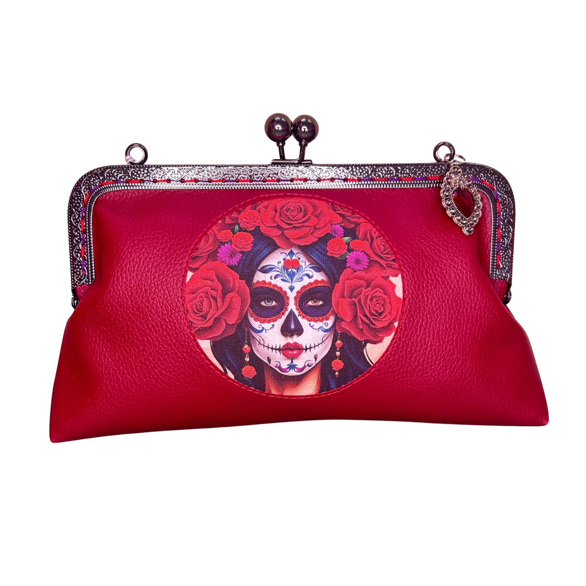 Ce modèle en similicuir allie élégance et fantaisie grâce à son design inspiré du maquillage mexicain, apportant une vraie touche tendance et colorée à vos tenues.