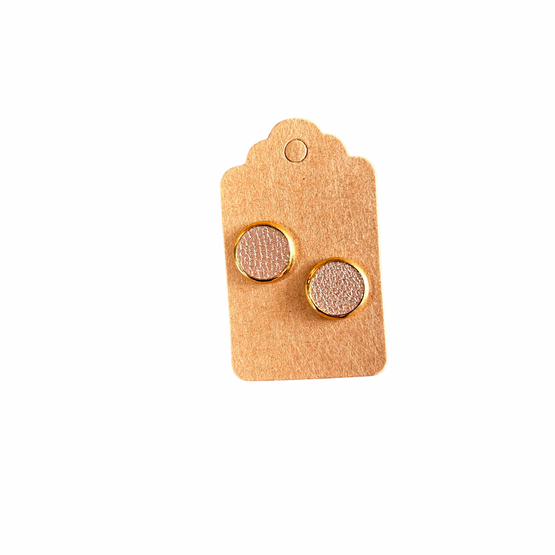 Fabriquées en cuir, ces boucles d’oreilles puces rondes sont montées sur des tiges en acier inoxydable hypoallergéniques.