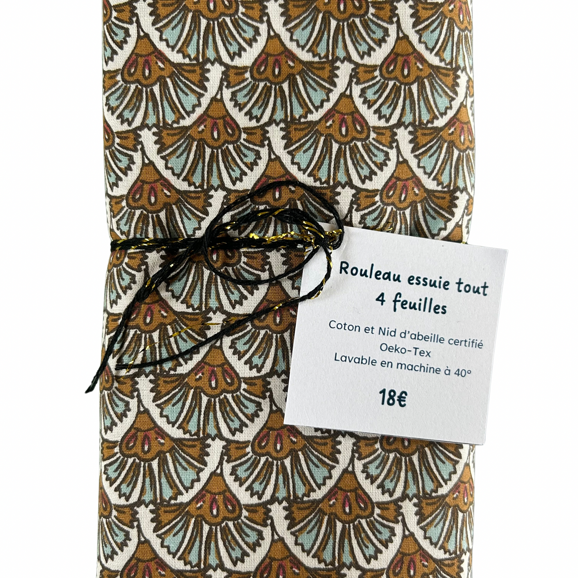Ce rouleau essuie-tout Milie Créas est composé de 4 feuilles en coton et nid d'abeille certifié oeko tex.