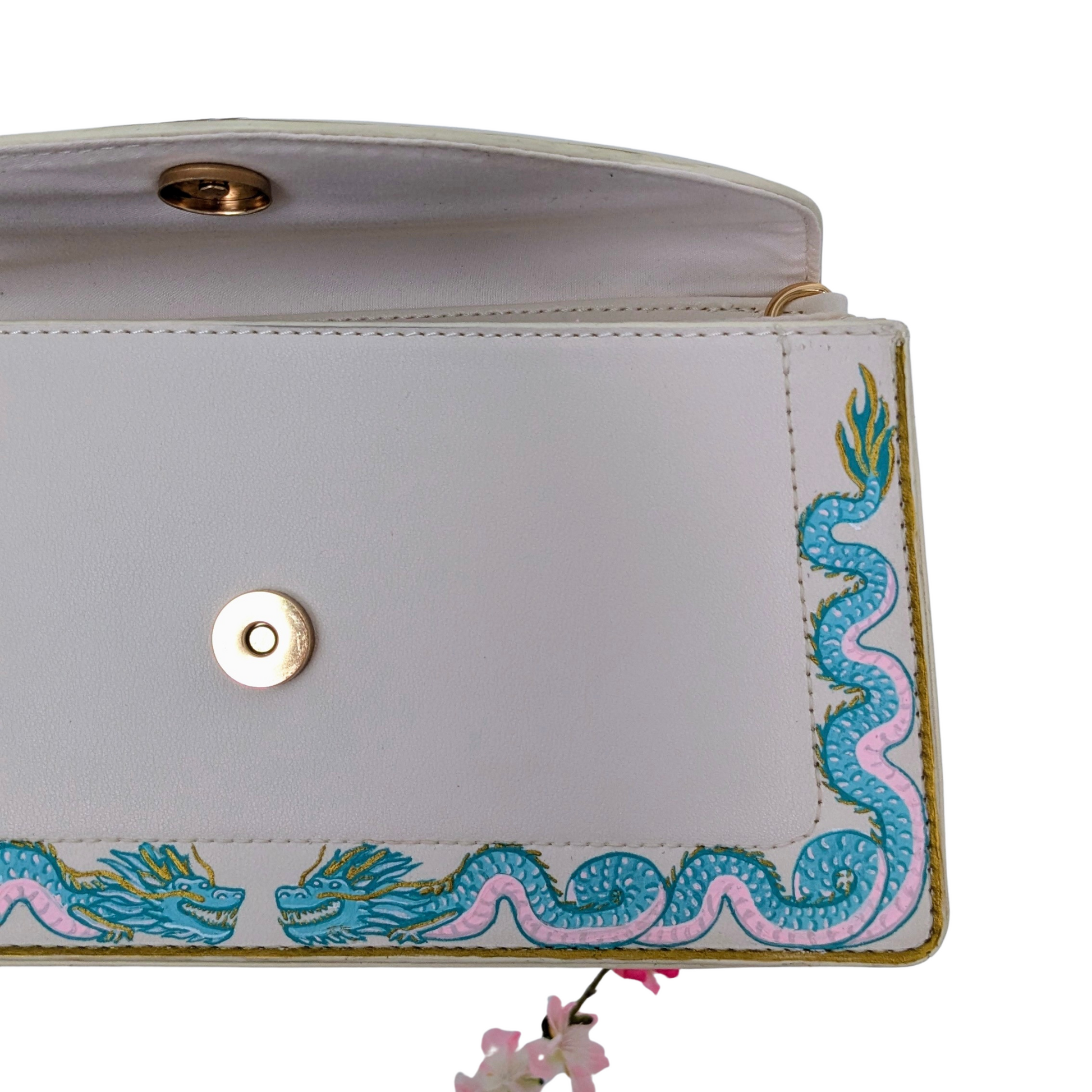 🐉 Sac crème peint à la main – Dragons & flammes Obb Odd