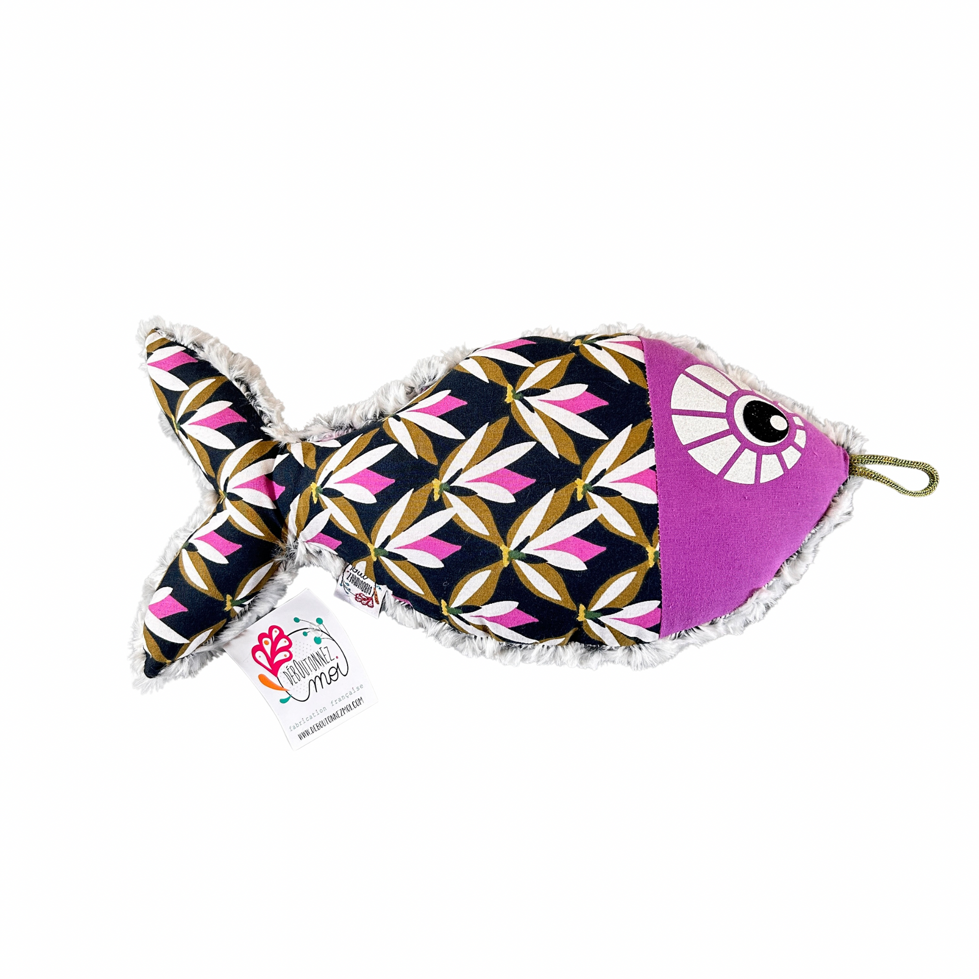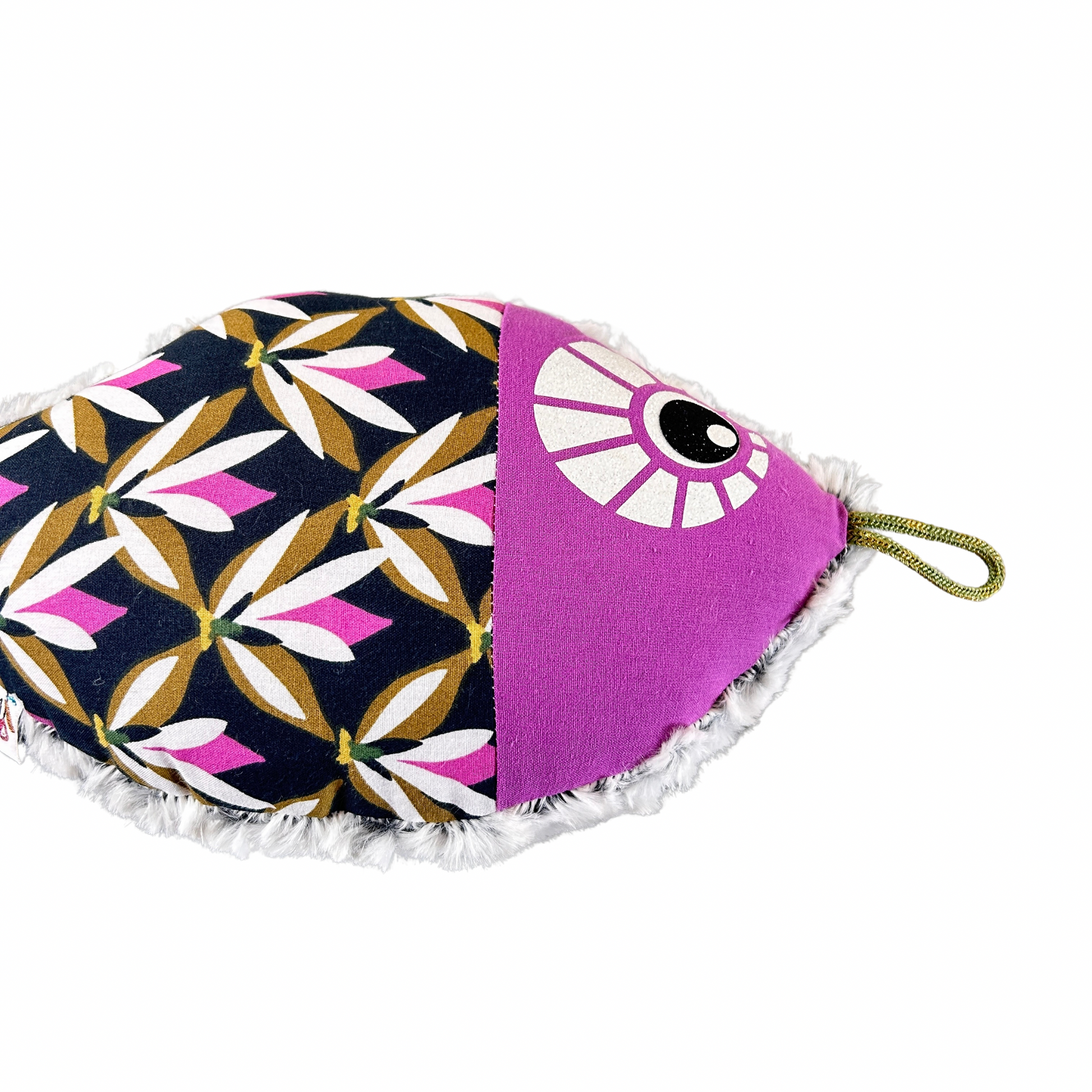 Cette adorable sardine en tissu est un coussin décoratif unique, confectionné à la main dans l’atelier breton de Déboutonnez-moi, à Plouguin.