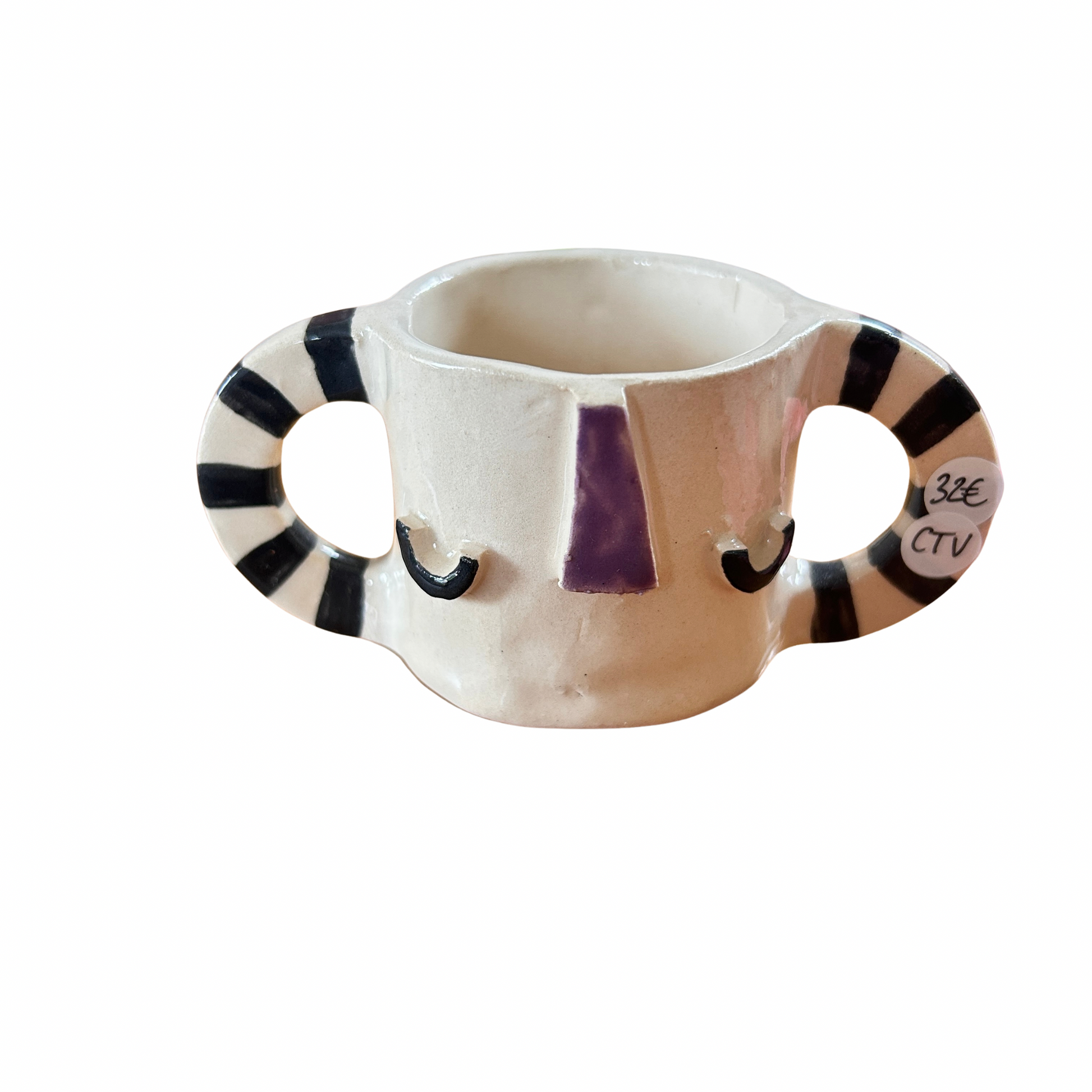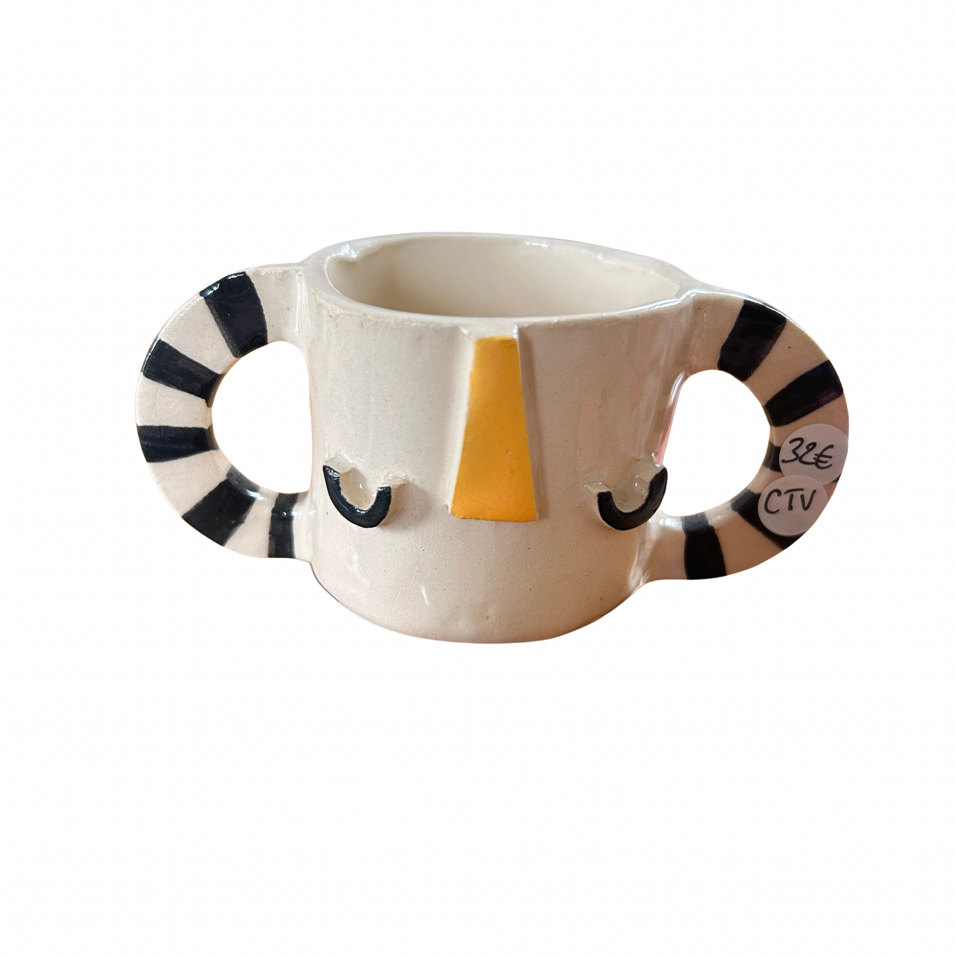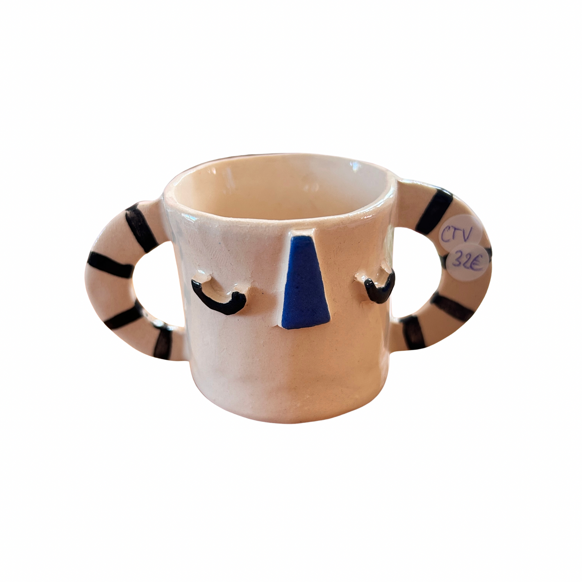 Offrez du caractère à votre pause café avec cette tasse visage en faïence, façonnée à la main et dotée de petites anses latérales. Chaque pièce est unique, avec un charme artisanal qui ne passe pas inaperçu.